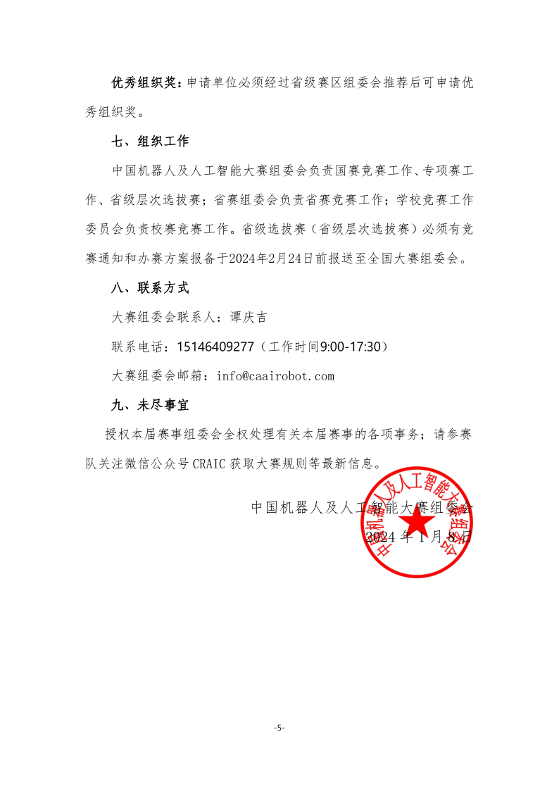 學(xué)生獎項:全國總決賽設(shè)置一等獎、二等獎、三等獎。獲獎比例同第二十五屆中國機(jī)器人及人工智能大賽。