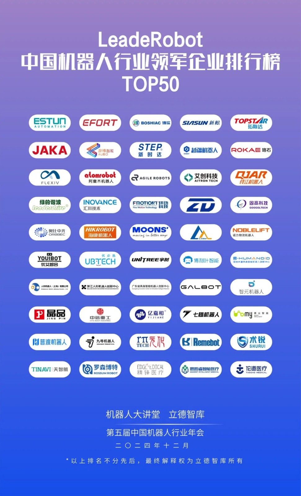 精鋒醫(yī)療入選“LeadeRobot2024年度中國機(jī)器人行業(yè)領(lǐng)軍企業(yè)排行榜TOP50”