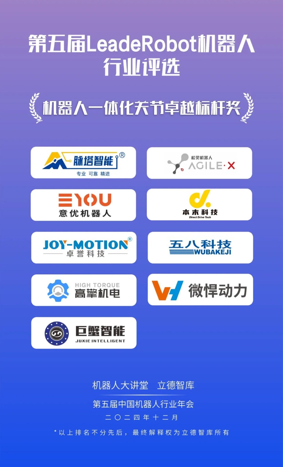 松靈機(jī)器人入選“LeadeRobot2024年度機(jī)器人一體化關(guān)節(jié)卓越標(biāo)桿獎(jiǎng)”