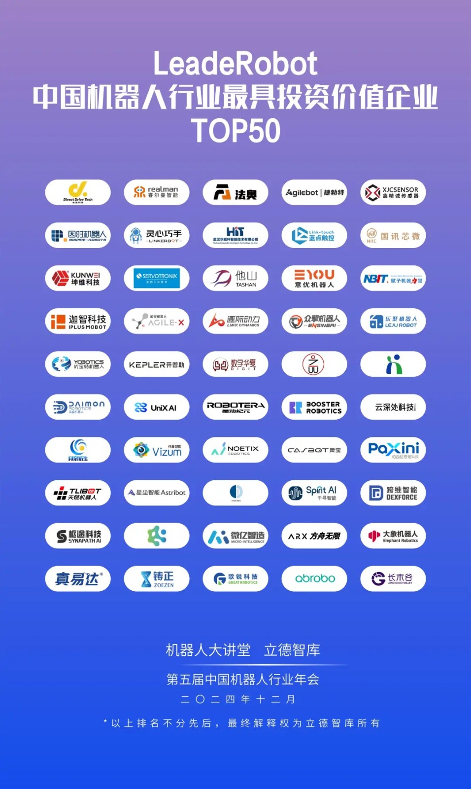 松靈機(jī)器人、優(yōu)寶特機(jī)器人、長(zhǎng)木谷入選“LeadeRobot2024年度機(jī)器人行業(yè)最具投資價(jià)值企業(yè)排行榜TOP50”