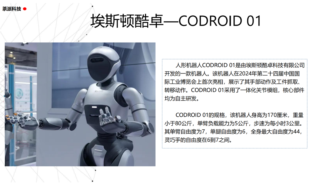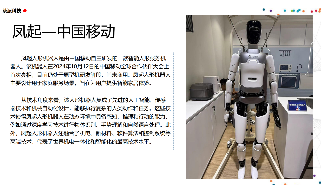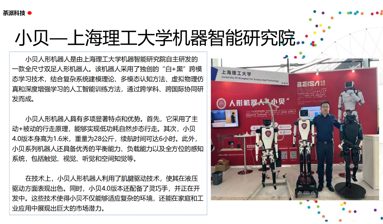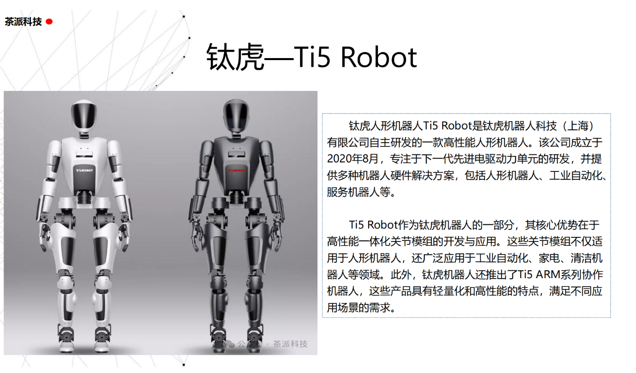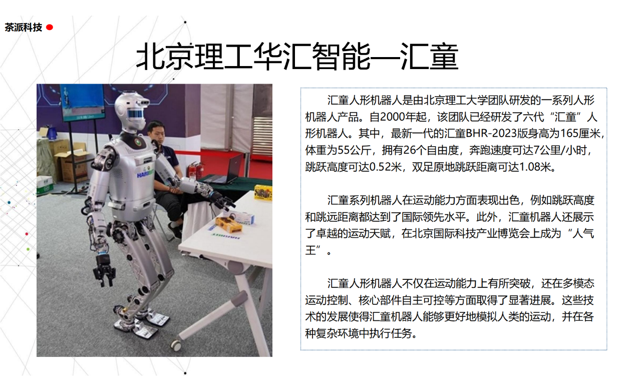 從實驗室到生產線,從概念設想到產品落地,中國人形機器人領域迎來了前所未有的井噴式發展。一款款設計精巧、功能強大的人形機器人如雨后春筍般涌現,它們或靈巧如舞者,或力大無窮,更不乏擁有情感交互能力的“智慧伴侶”。這不僅是對技術極限的一次次挑戰,更是對“中國制造”向“中國智造”跨越的生動詮釋。??在這一波人形機器人浪潮中,無數初創團隊猶如璀璨星辰,他們懷揣夢想,勇于探索未知。每一個深夜的燈火,每一次算法的迭代,都是對未知世界的勇敢叩問。正是這些充滿激情與創造力的團隊,為人形機器人產業注入了源源不斷的活力與希望。??作為深耕機器人應用場景研究的先行者,武漢茶派科技深知責任重大。在這一年里,我們積極擁抱變革,密切關注中國人形機器人產業的每一步成長。我們愿做那座橋梁,連接百家智慧,匯聚行業力量,共同推動人形機器人從技術的象牙塔走向廣闊的應用市場,讓科技之光溫暖每一個角落。??展望2025,我們滿懷期待。隨著技術的不斷迭代與應用的持續深化,人形機器人將不再只是展臺上的明星,而是真正成為我們生活的一部分。它們將穿梭于家庭、醫院、工廠、學校……以更加人性化、智能化的方式服務人類,成為我們不可或缺的伙伴與朋友。??在這一年的尾聲,讓我們向所有為中國機器人產業發展默默奉獻的科研工作者致以最崇高的敬意!是你們,用智慧和汗水鋪就了通往未來的智能之路。2025,讓我們攜手并進,共同見證人形機器人從夢想走進現實,開啟一個屬于所有人的智能新時代!??加入我們,一起見證并參與這場科技革命,讓未來因你我而更加精彩!