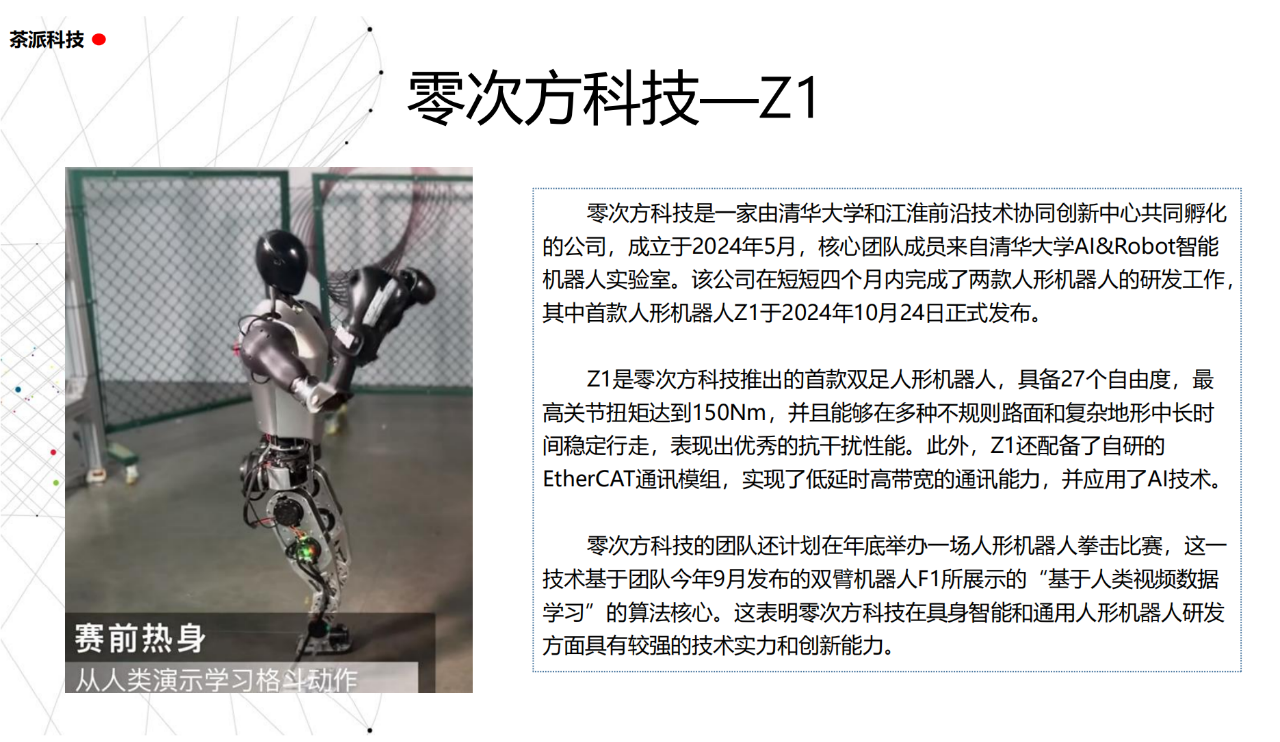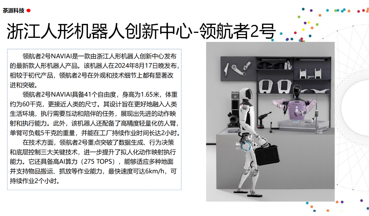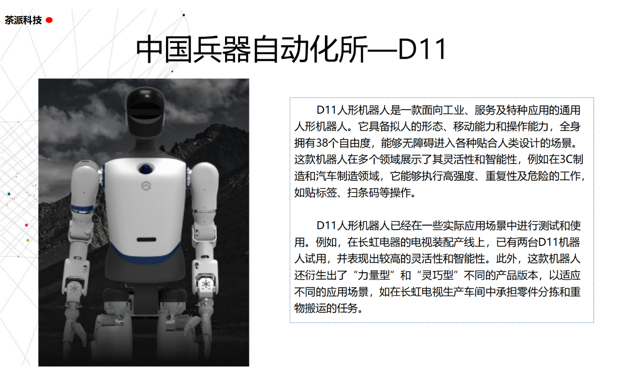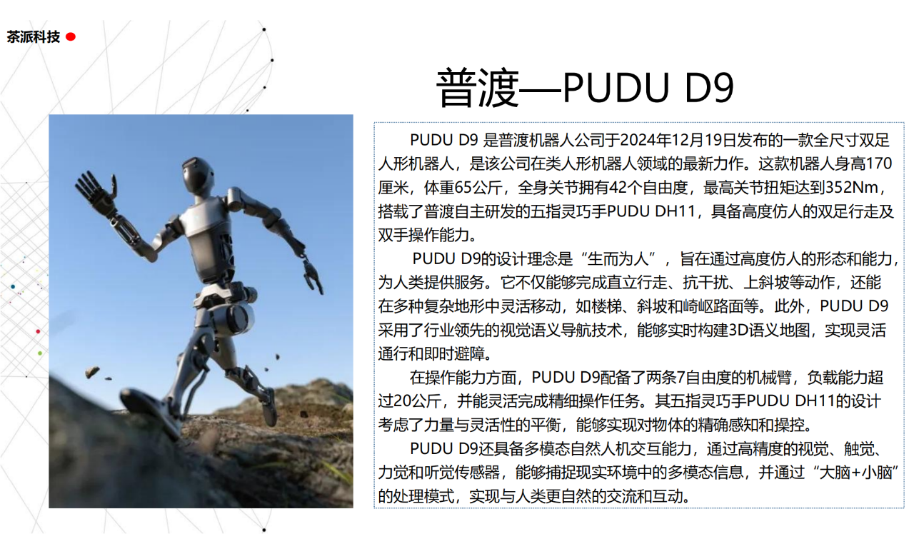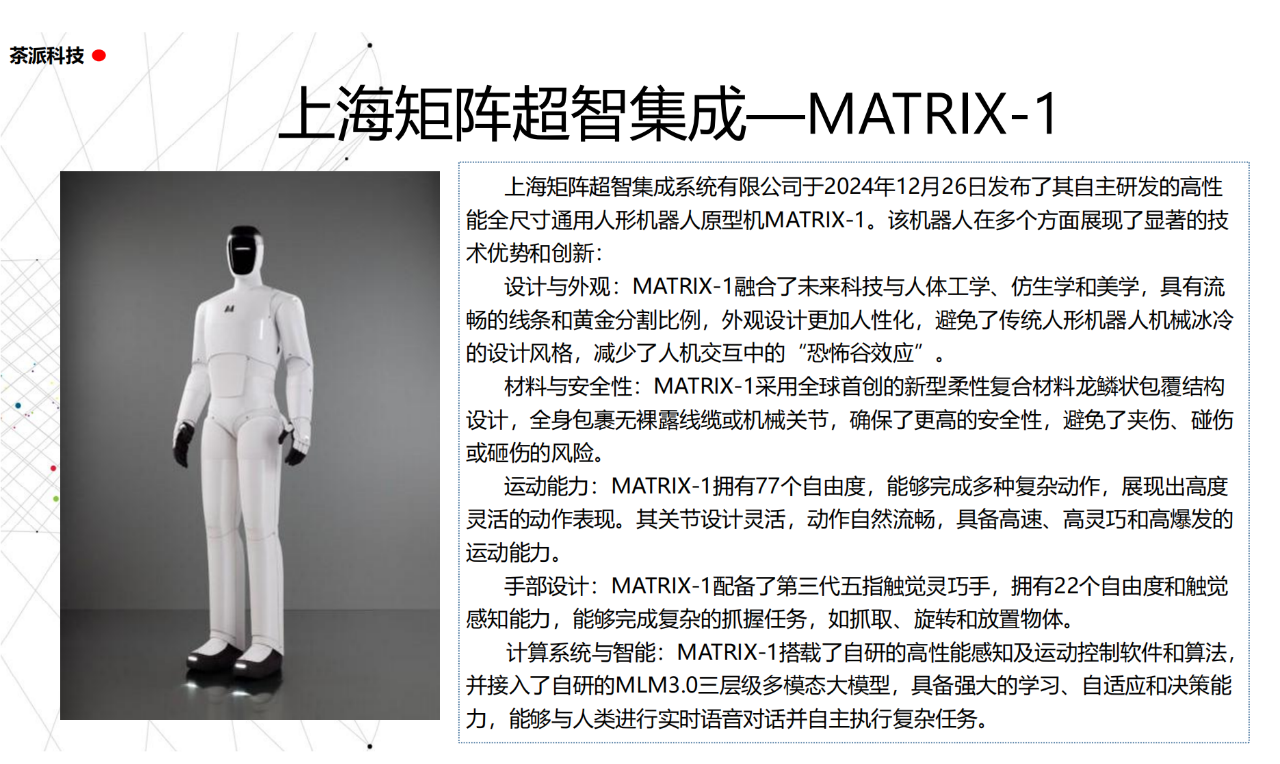 從實驗室到生產線,從概念設想到產品落地,中國人形機器人領域迎來了前所未有的井噴式發展。一款款設計精巧、功能強大的人形機器人如雨后春筍般涌現,它們或靈巧如舞者,或力大無窮,更不乏擁有情感交互能力的“智慧伴侶”。這不僅是對技術極限的一次次挑戰,更是對“中國制造”向“中國智造”跨越的生動詮釋。??在這一波人形機器人浪潮中,無數初創團隊猶如璀璨星辰,他們懷揣夢想,勇于探索未知。每一個深夜的燈火,每一次算法的迭代,都是對未知世界的勇敢叩問。正是這些充滿激情與創造力的團隊,為人形機器人產業注入了源源不斷的活力與希望。??作為深耕機器人應用場景研究的先行者,武漢茶派科技深知責任重大。在這一年里,我們積極擁抱變革,密切關注中國人形機器人產業的每一步成長。我們愿做那座橋梁,連接百家智慧,匯聚行業力量,共同推動人形機器人從技術的象牙塔走向廣闊的應用市場,讓科技之光溫暖每一個角落。??展望2025,我們滿懷期待。隨著技術的不斷迭代與應用的持續深化,人形機器人將不再只是展臺上的明星,而是真正成為我們生活的一部分。它們將穿梭于家庭、醫院、工廠、學校……以更加人性化、智能化的方式服務人類,成為我們不可或缺的伙伴與朋友。??在這一年的尾聲,讓我們向所有為中國機器人產業發展默默奉獻的科研工作者致以最崇高的敬意!是你們,用智慧和汗水鋪就了通往未來的智能之路。2025,讓我們攜手并進,共同見證人形機器人從夢想走進現實,開啟一個屬于所有人的智能新時代!??加入我們,一起見證并參與這場科技革命,讓未來因你我而更加精彩!