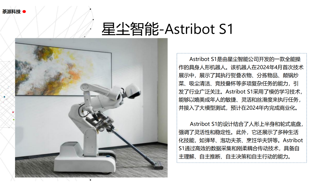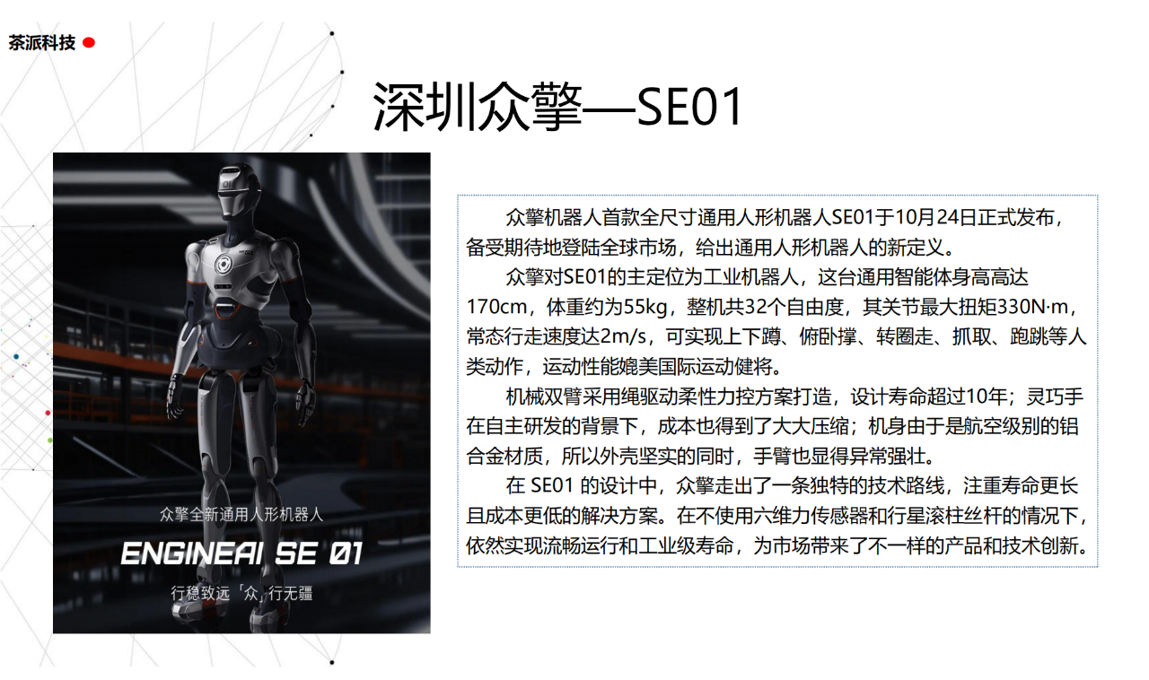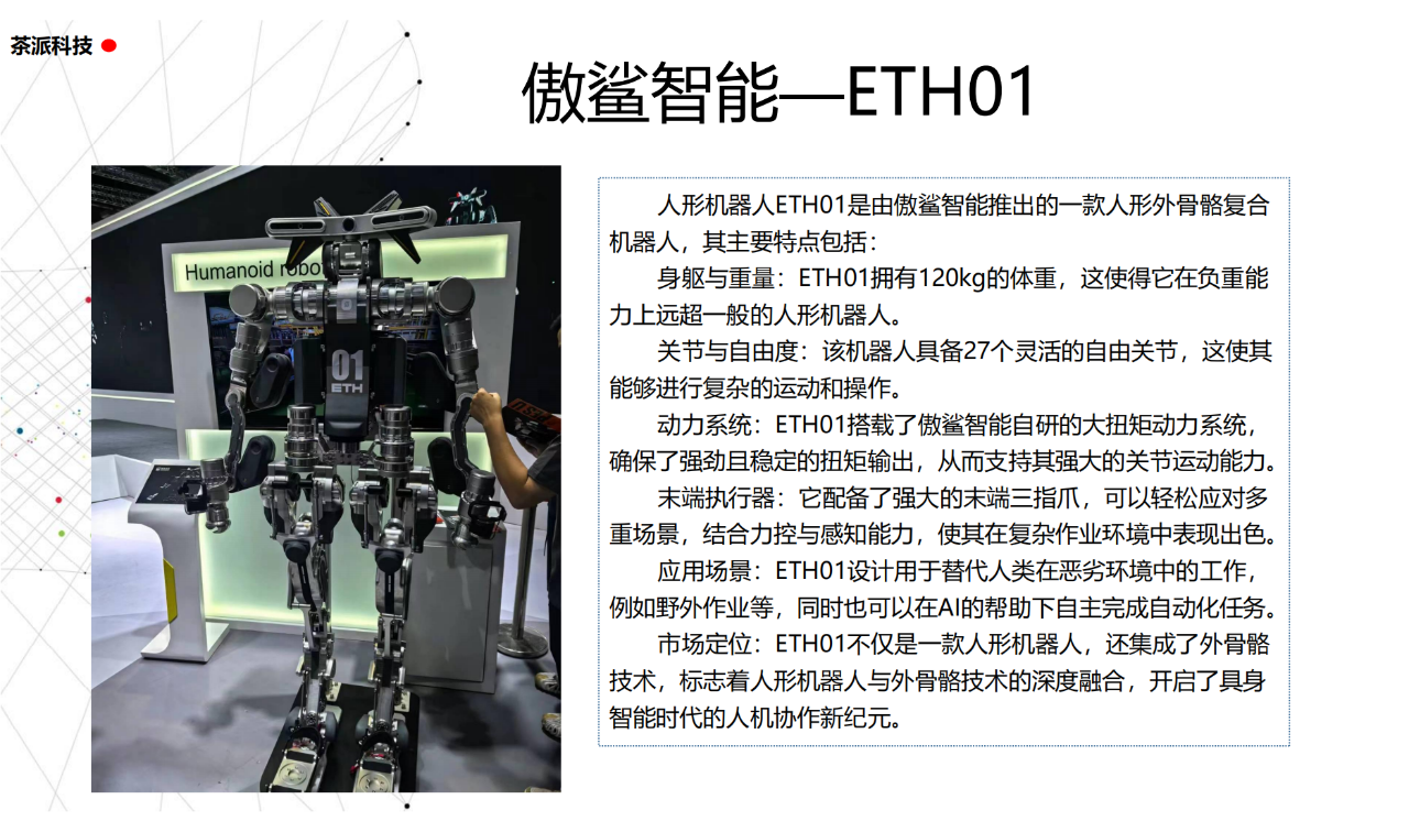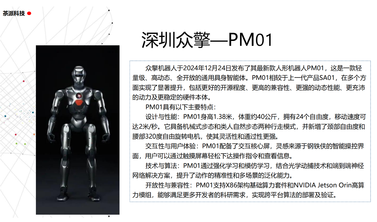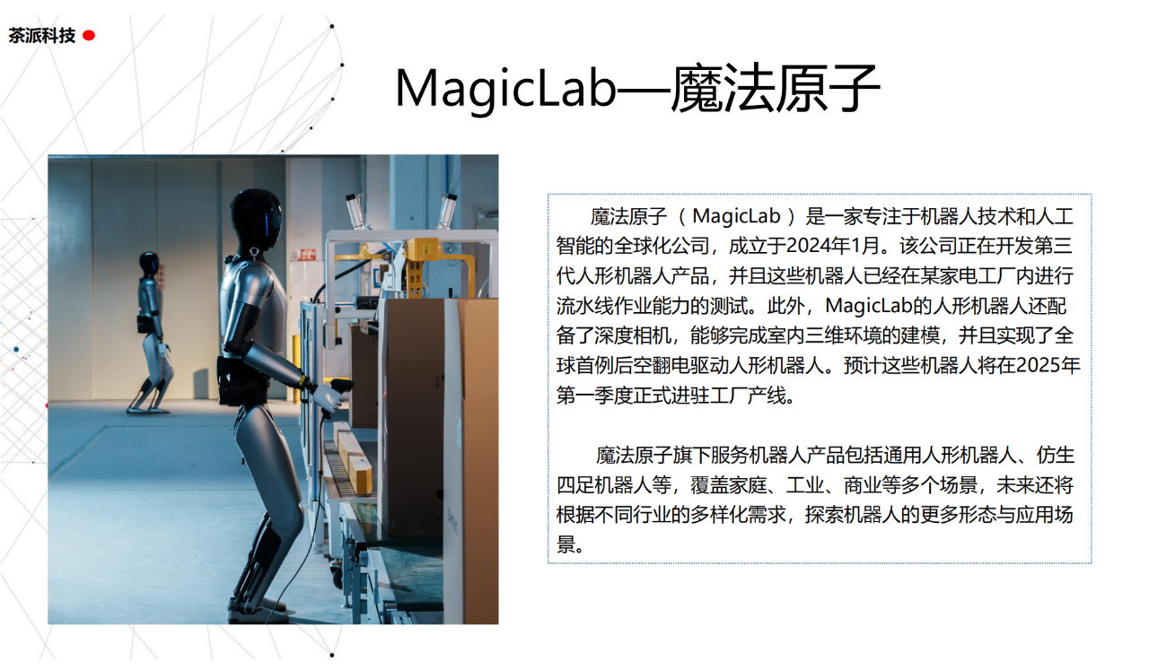 從實驗室到生產線,從概念設想到產品落地,中國人形機器人領域迎來了前所未有的井噴式發展。一款款設計精巧、功能強大的人形機器人如雨后春筍般涌現,它們或靈巧如舞者,或力大無窮,更不乏擁有情感交互能力的“智慧伴侶”。這不僅是對技術極限的一次次挑戰,更是對“中國制造”向“中國智造”跨越的生動詮釋。??在這一波人形機器人浪潮中,無數初創團隊猶如璀璨星辰,他們懷揣夢想,勇于探索未知。每一個深夜的燈火,每一次算法的迭代,都是對未知世界的勇敢叩問。正是這些充滿激情與創造力的團隊,為人形機器人產業注入了源源不斷的活力與希望。??作為深耕機器人應用場景研究的先行者,武漢茶派科技深知責任重大。在這一年里,我們積極擁抱變革,密切關注中國人形機器人產業的每一步成長。我們愿做那座橋梁,連接百家智慧,匯聚行業力量,共同推動人形機器人從技術的象牙塔走向廣闊的應用市場,讓科技之光溫暖每一個角落。??展望2025,我們滿懷期待。隨著技術的不斷迭代與應用的持續深化,人形機器人將不再只是展臺上的明星,而是真正成為我們生活的一部分。它們將穿梭于家庭、醫院、工廠、學校……以更加人性化、智能化的方式服務人類,成為我們不可或缺的伙伴與朋友。??在這一年的尾聲,讓我們向所有為中國機器人產業發展默默奉獻的科研工作者致以最崇高的敬意!是你們,用智慧和汗水鋪就了通往未來的智能之路。2025,讓我們攜手并進,共同見證人形機器人從夢想走進現實,開啟一個屬于所有人的智能新時代!??加入我們,一起見證并參與這場科技革命,讓未來因你我而更加精彩!